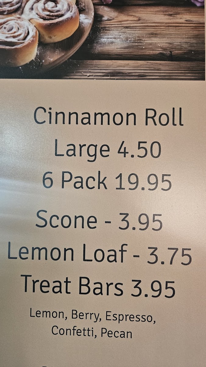 Large Cinnamon Rolls the best in town Super good heated Order ahead and put the time you want it ready. Come right up to the drive thru.